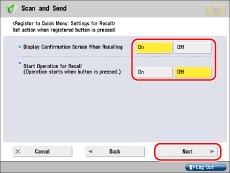 If you select [On], when the registered button is recalled, the confirmation dialog box for the settings is displayed. For more information on the confirmation dialog box for the settings, see