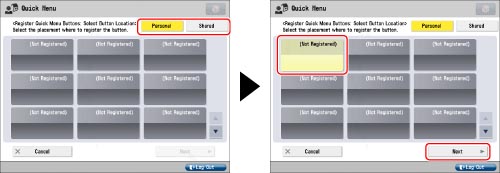 Select [Personal] or [Shared] → select the button you want to register → press [Next].