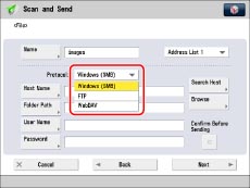 For more information on the available protocols, see "Specifying a File Server Using the Keyboard."