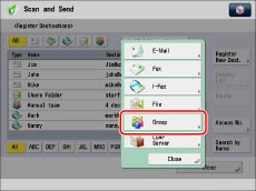 The Group Address feature enables you to create a group. You can register different types of destinations (such as e-mail, I-fax, file server, or mail box destinations) as a single group.