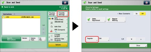 Press [Favorite Settings] → [Register].