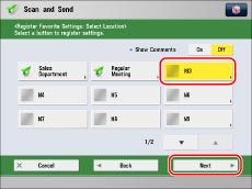 Press [Scan and Send] → set the destination and send settings to register.