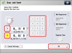 If you want to scan nonstandard size originals longer than 11" x 17", press [Long Original]. The maximum length of originals that you can scan is 24 7/8" (630 mm).