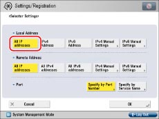 Select [IPv4 Manual Settings] for <Local Address> → specify the IPv4 address → press [OK].