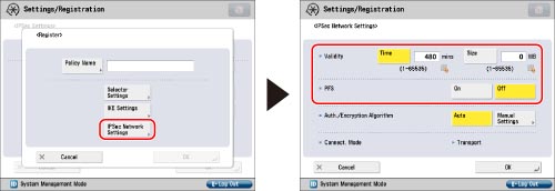 [Off] for <PFS>: If one encryption key is exposed to a third party when the PFS function is disabled, other encryption keys may be able to be guessed. If you set <PFS> to 'On', the destination for PFS communication must also have PFS enabled.