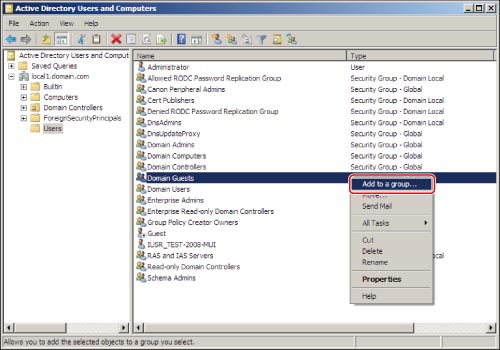 Right-click the account of the user you want to add to the 'Canon Peripheral Admins' group.