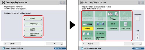 You can register settings in the shortcut keys displayed on the Fax screen. You can register up to four desired buttons from [Options].