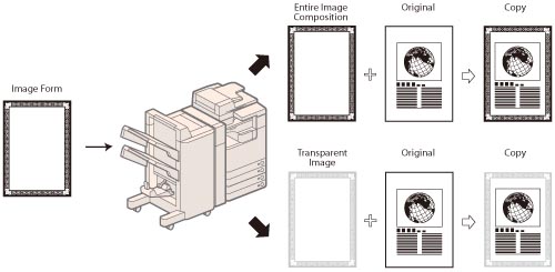 To use the Superimpose Image mode, the image form must be registered in the machine beforehand. (See "Registering Forms for the Superimpose Image Mode.")