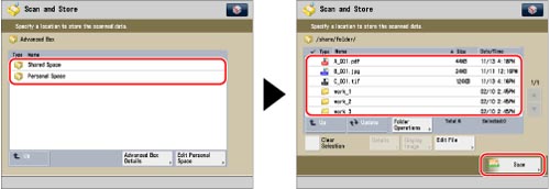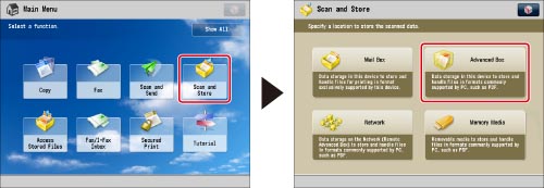 Press [Scan and Store] → [Advanced Box].