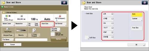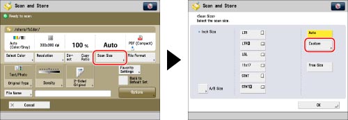 Press [Scan Size] → [Custom].