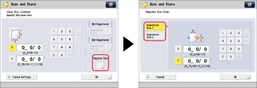 Press [Register Size] → [Registered Size 1] or [Registered Size 2].