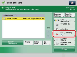 You can convert original color/grayscale images scanned at a resolution of 300 dpi to compact (approx. 1/10 original size) PDF files. This mode eliminates the issue of the large file size of digitized documents, reducing color documents to the size of black-and-white documents. This also enables you to reduce the load on the network and servers. For details, see