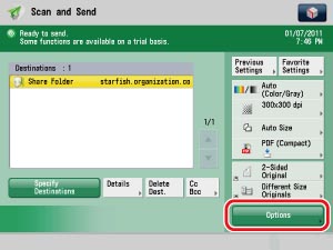 To scan different sized originals, press [Different Size Originals]. This mode enables you to scan different size originals with the same widths (11" x 17" and LTR, or LTRR and STMT, etc.) or different widths (11" x 17" and LGL, or LTR and LGL, etc.), together as one group by setting them in the feeder. You can reduce the time it takes to send because you do not need to send according to the original size.