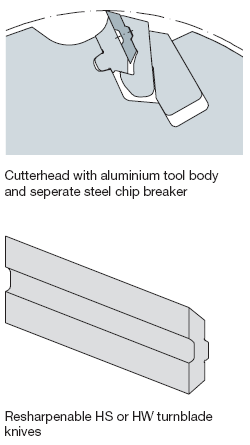Tool body of steel with 2 HS-planer knives and 2 seatings for