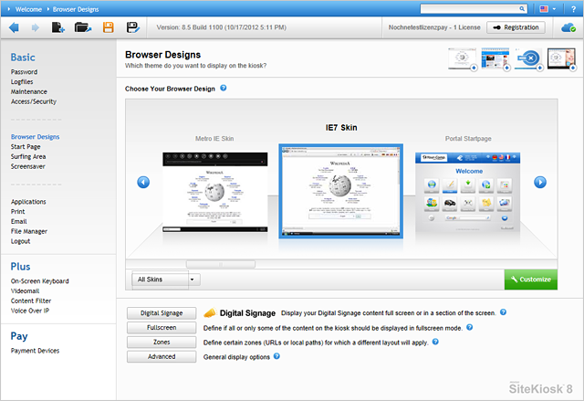 SiteKiosk includes many different browser skins and each can be modified to meet your requirements.
