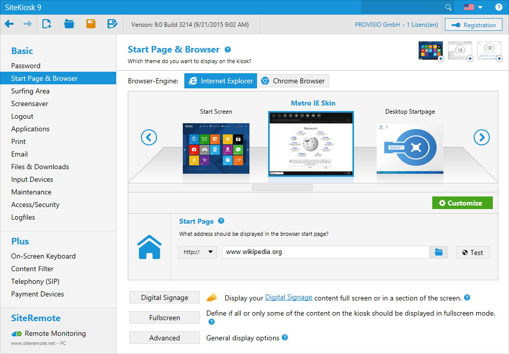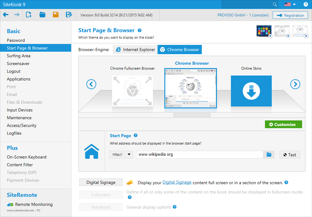 In addition to the Internet Explorer, SiteKiosk 9 supports Google's Chrome Browser Engine. This feature allows SiteKiosk to be adaptable to future changes in browser technology such as Microsoft's announcement to discontinue Internet Explorer.