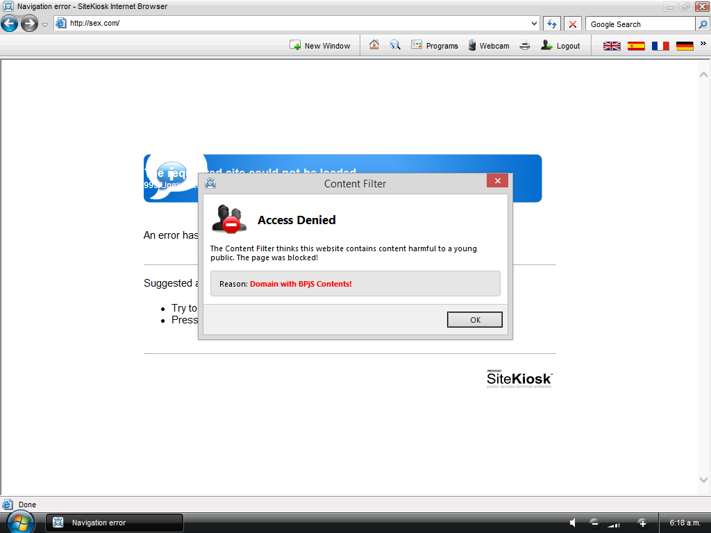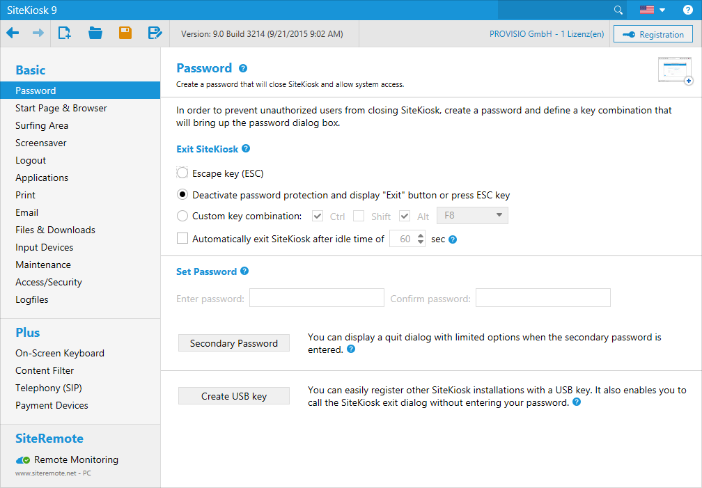 Start SiteKiosk and your operating system, web browser, and other applications are protected from manipulation.Overview of the most important features