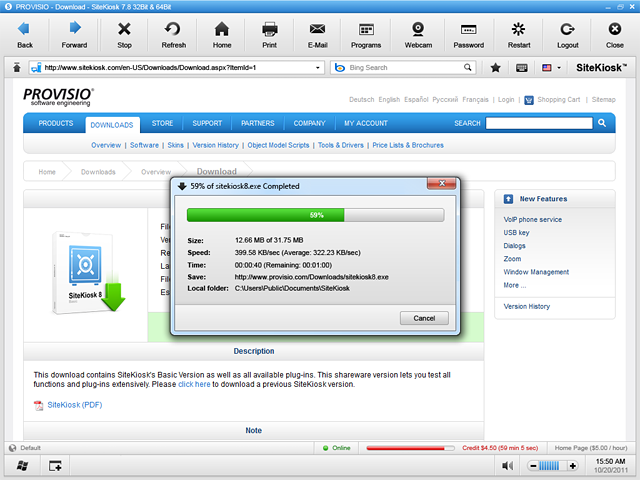 Restricts and prohibit the downloading of files to the kiosk terminal. View or copy files to other media using SiteKiosk's integrated file manager.