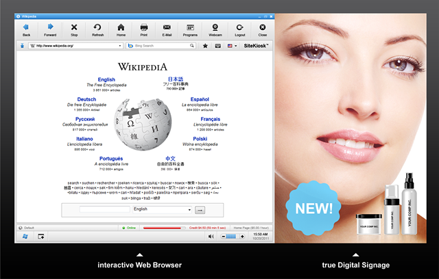 With SiteRemote, you can distribute multimedia content to your SiteKiosk machines from the server. Your content can be displayed during idle time as screen saver or in split-screen display mode with SiteKiosk.Digital Signage