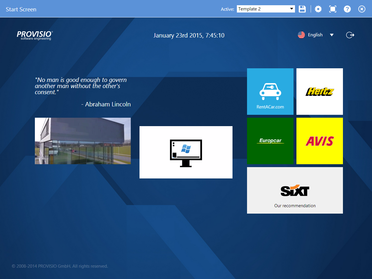 With the Start-Screen Template and our new WYSIWYG editor you can easily design your Start Screens using drag & drop.Start-screen generator