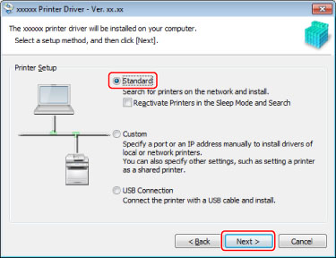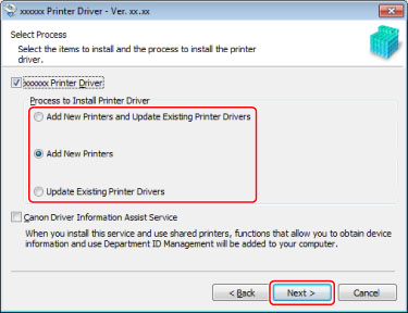 [Process to Install Printer Driver]: Select this if necessary if a driver is already installed.