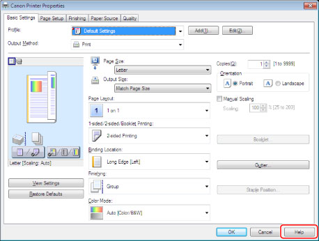 The help is displayed by clicking [Help] in the driver screen.