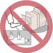 If excessive stress is applied to the connection part of the power cord, it may damage the power cord or the wires inside the machine may disconnect. This could result in a fire. Avoid the following situations: