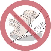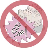 Be careful not to spill liquid or drop any foreign objects, such as paper clips or staples inside the machine. If a foreign object comes into contact with electrical parts inside the machine, it might cause a short circuit and result in a fire or electrical shock.