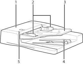 Originals placed here are automatically fed sheet by sheet to the platen glass. Place originals into this tray with the surface that you want to scan face up.