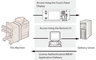 This machine is compliant with MEAP (Multifunctional Embedded Application Platform). MEAP is a software platform that enables the development of custom applications based on Oracle's Java and Java 2 Platform, Micro Edition (J2ME).