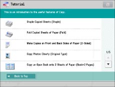 Pressing [Tutorial] from the Main Menu screen brings up the tutorial screen for this machine.