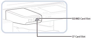 Before inserting the memory media, make sure that the memory media is facing the correct direction. If the memory media is inserted incorrectly, the memory media, the machine, and the Multimedia Reader/Writer-A2 may be damaged.