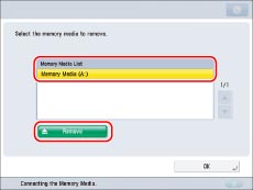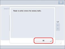 Make sure you follow the following procedure to remove the memory media from the machine. If the memory media is removed from the machine in a way other than the procedure below, the memory media, the machine, and the Multimedia Reader/Writer-A2 may be damaged.