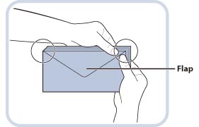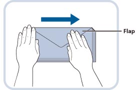 Fold the flap before loading the envelope in the multi-purpose tray, as shown in the illustration.