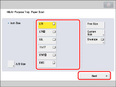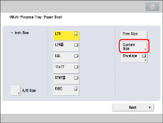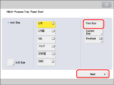 (Clear) → enter the correct values.To select a registered paper size stored in a size button ([S1] to [S5]), you must store the irregular paper size in the size button beforehand. For instructions on storing irregular paper sizes, see "Registering/Editing/Deleting Custom Paper Sizes."