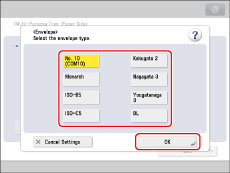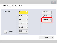 Set the paper or envelope size to the same size as the paper or envelopes loaded in the multi-purpose tray.