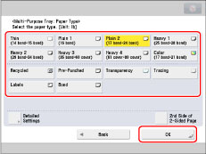 You can register paper types that are not listed in Detailed Settings for Selecting the Paper Type. For information on registering a custom paper type, see "Registering/Editing Custom Paper Types."