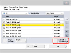 To print on the backside of preprinted paper, load the paper into the multi-purpose tray, and press [2nd Side of 2-Sided Page] on the paper selection screen that appears.