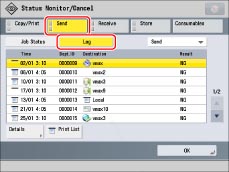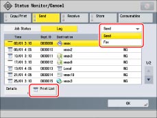 To print the send history for the Fax Activity Report, select [Fax] in the drop-down list. (See "FAX ACTIVITY REPORT TX/RX.")