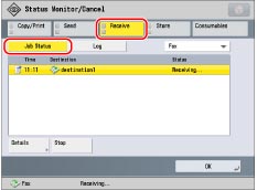 Displays detailed information for the selected job. Check the detailed information → press [OK] to return to the Receive screen.