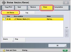 Displays detailed information for the selected job. Check the detailed information → press [OK] to return to the Store screen.