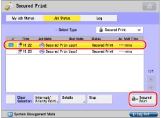 If you are logged on as the SSO-H administrator, jobs sent by all users are displayed, and you can view the details of or cancel the jobs. However, secured documents and encrypted secured documents can only be printed by the user that sent them.