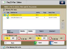 If you set <Fax Memory Lock> and/or <I-Fax Memory Lock> to 'Off', files received through the Fax/I-Fax function are automatically printed and deleted from the Memory RX Inbox.