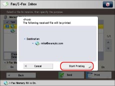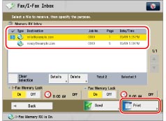 If you set <Fax Memory Lock> and/or <I-Fax Memory Lock> to 'Off', files received through the Fax/I-Fax function are automatically printed and deleted from the Memory RX Inbox.