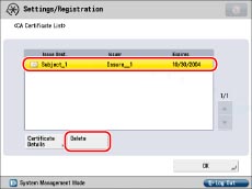 Confirming/Deleting a CA Certificate