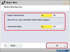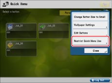 Only the System Manager, SSO-H System Administrator (Administrator), Network Administrator (NetworkAdmin), or Device Administrator (DeviceAdmin) can configure the Quick Menu access restriction settings. For information on the types of administrators, see "Administrator Settings."