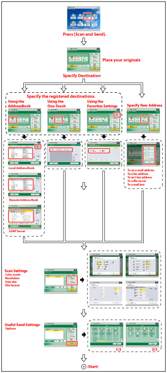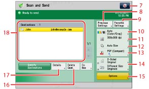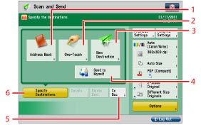 Press to select and use other modes available for scanning and sending. Set useful send functions such as sending different sized originals together or sending 2-sided originals.
