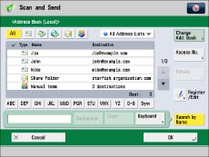 Press [Search by Name] again to close the screen for refining the address book and return to the previous screen.