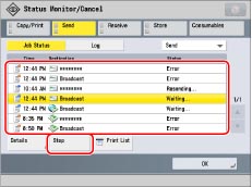(Stop) to cancel a send job that is currently being scanned. |