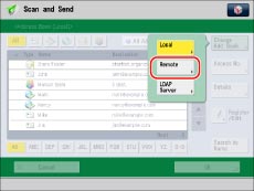 [Change Add. Book] only appears if you register both the Remote Address Book and LDAP server. If only the Remote Address Book is registered on the machine, [To Remote Add. Book] is displayed.